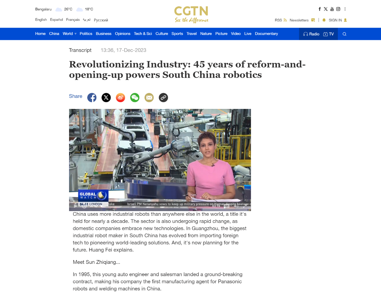 China uses more industrial robots than anywhere else in the world, a title it's held for nearly a decade. The sector is also undergoing rapid change, as domestic companies embrace new technologies. In Guangzhou, the biggest industrial robot maker in South China has evolved from importing foreign tech to pioneering world-leading solutions. And, it's now planning for the future. Huang Fei explains.